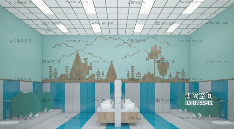 g13-12-28现代儿童造型墙面卫生间 3d模型下载 [模型ID:73341]