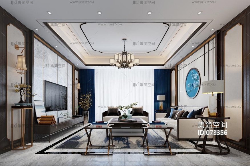 新中式样板间客厅 3d模型下载 [模型ID:73356]