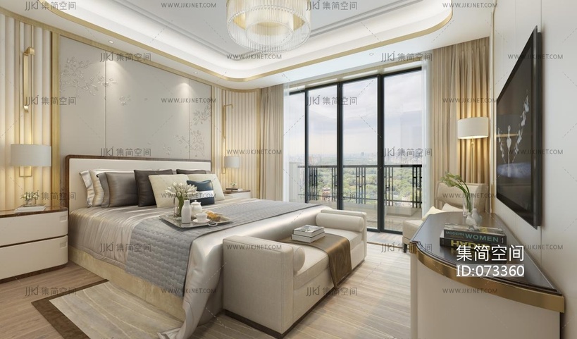 简欧式卧室 3d模型下载 [模型ID:73360]