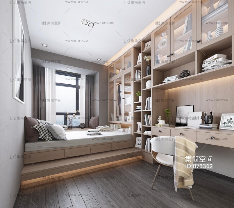 北欧现代loft榻榻米卧室 3d模型下载 [模型ID:73362]