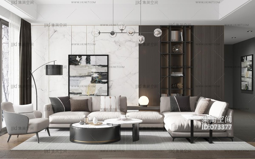 中古风客厅,美式客厅,圆形茶几,装饰画,移动电视,3d模型下载