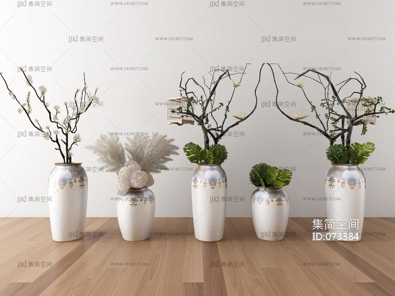 新中式盆栽花瓶干枝摆件 3d模型下载 [模型ID:73384]