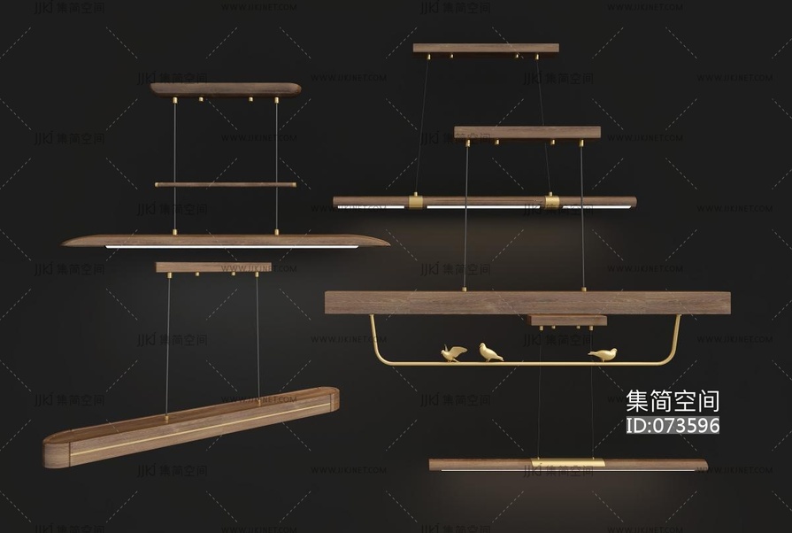现代新中式艺术吊灯_竹子主题装饰吊灯3D模型3d模型下载