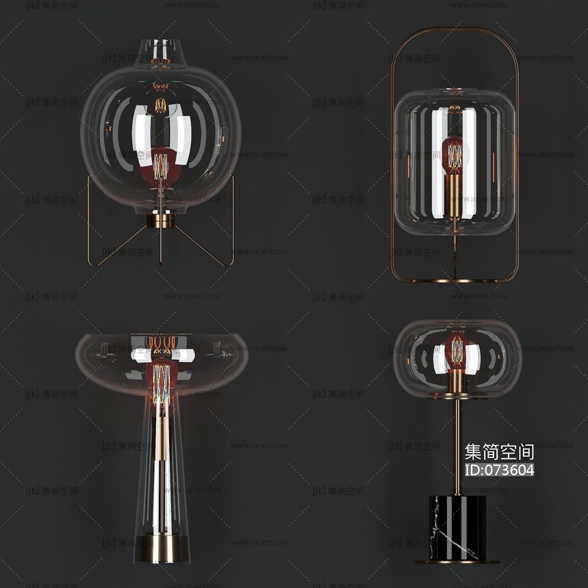中古风台灯装饰灯灯具,台灯3d模型下载