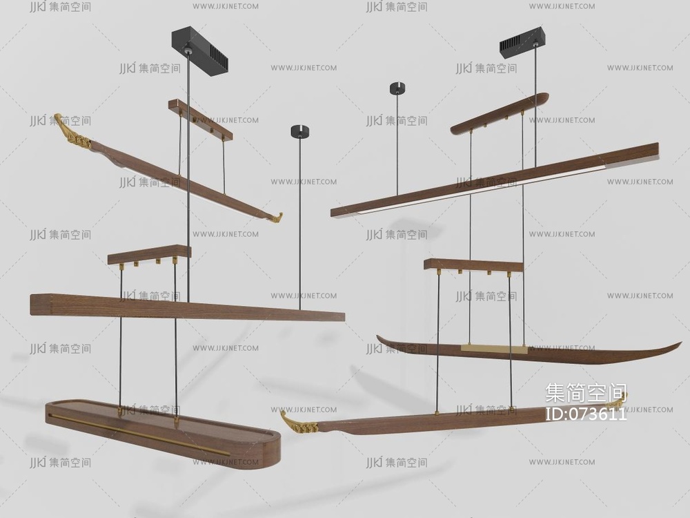 现代新中式艺术吊灯_竹子主题装饰吊灯3D模型3d模型下载