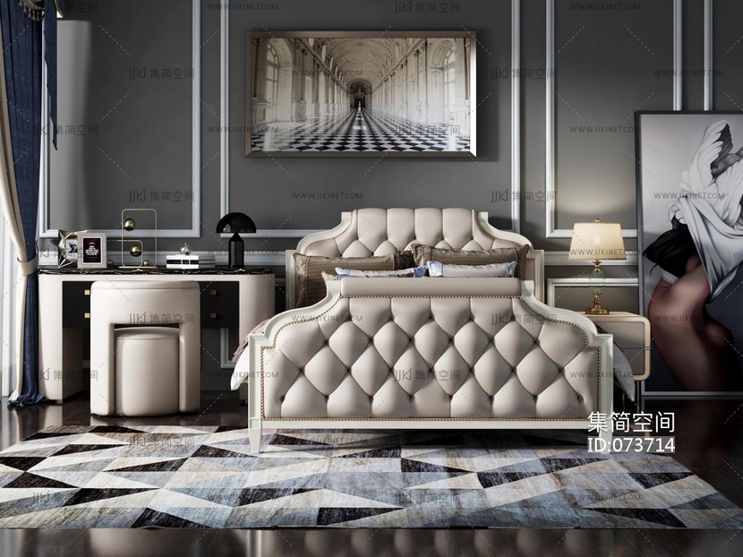 5欧式法式巴洛克古典雕花双人床圆形床头柜3d模型3d模型下载