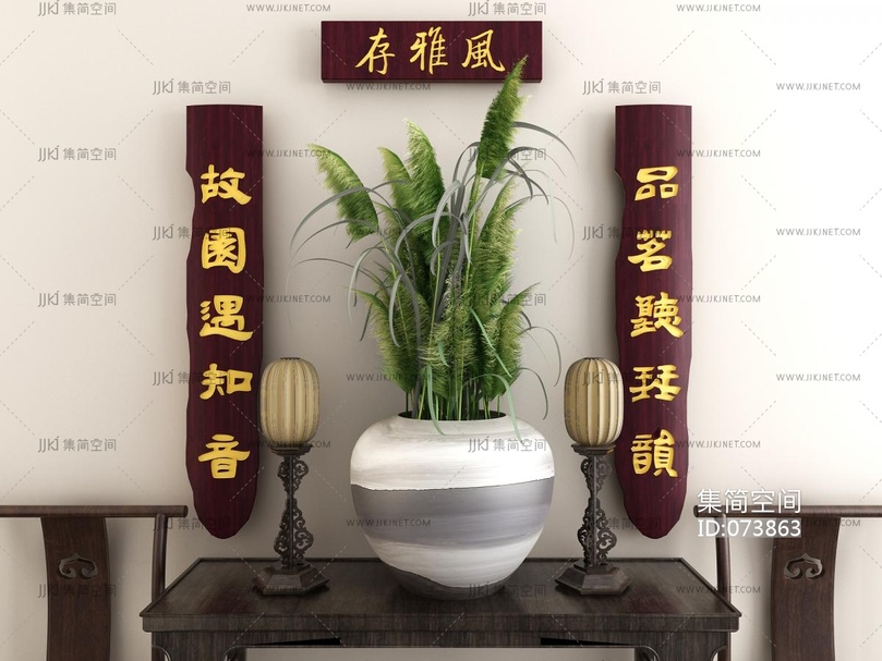 新中式侘寂艺术装置_竹雕刻画竹子艺术品3D模型3d模型下载