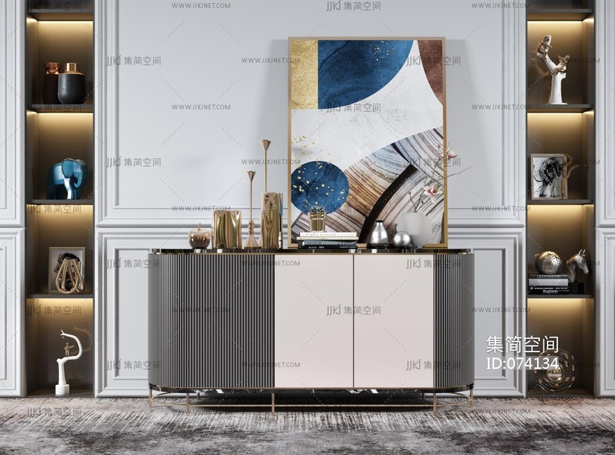 17现代轻奢边柜电视柜玄关柜摆件 3d模型下载 [模型ID:74134]