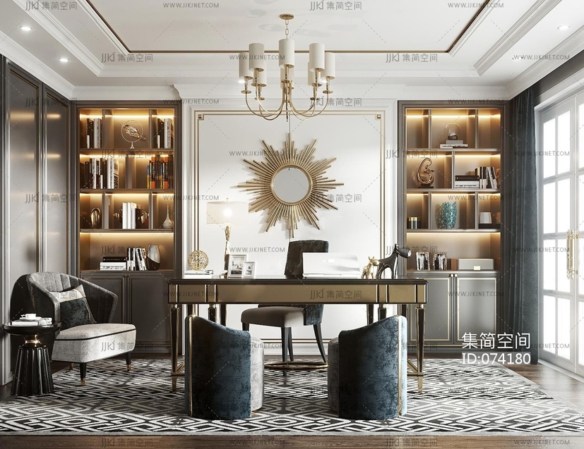 23简欧式轻奢书房 3d模型下载 [模型ID:74180]