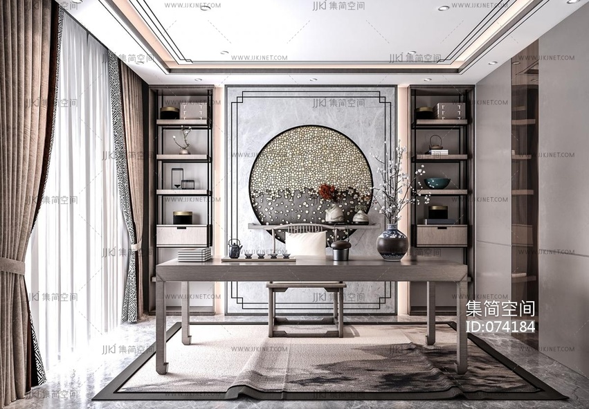 30新中式书房,书房,书桌,单椅,书柜,衣柜书桌 3d模型下载 [模型ID:74184]