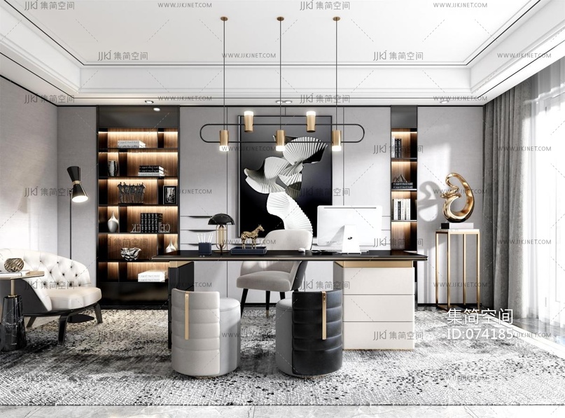 现代轻奢书房 3d模型下载 [模型ID:74185]