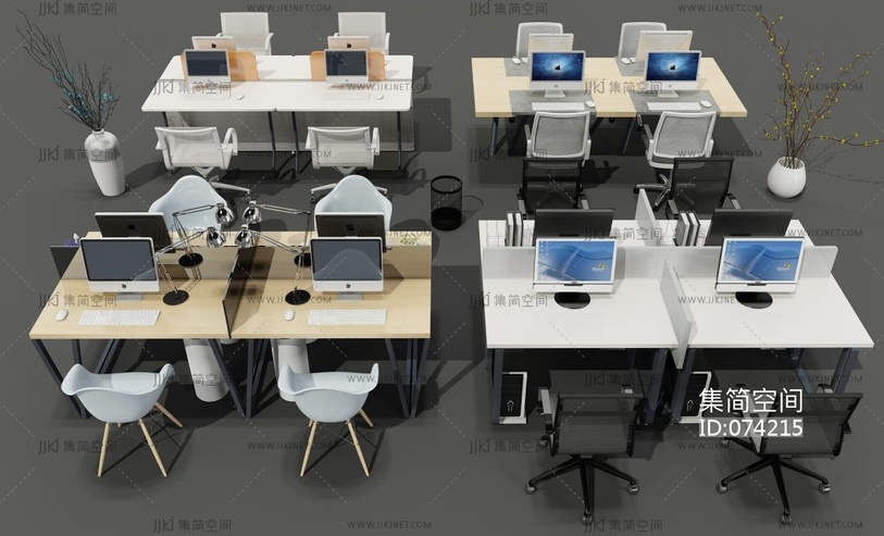 现代办公桌椅员工工位 3d模型下载 [模型ID:74215]