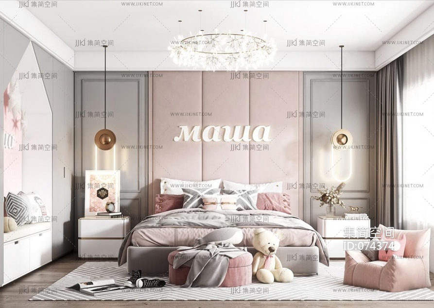01现代简欧式儿童房女孩房女儿房 3d模型下载 [模型ID:74374]