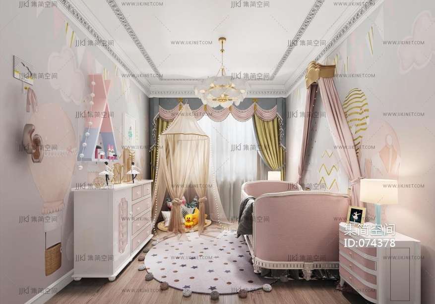 现代简欧式儿童房婴儿房 3d模型下载 [模型ID:74378]