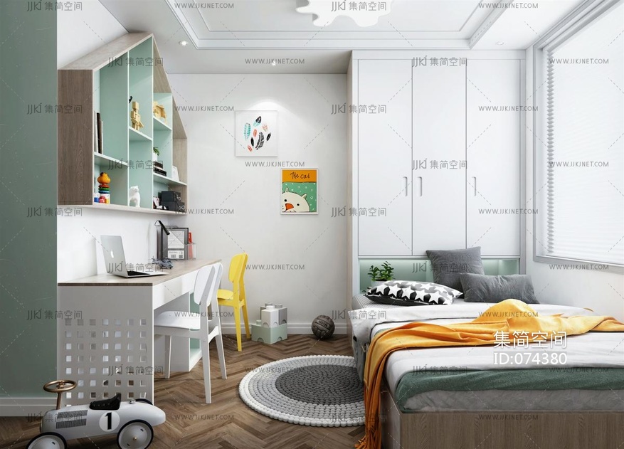07-现代儿童房,儿童床学习桌-3d模型下载