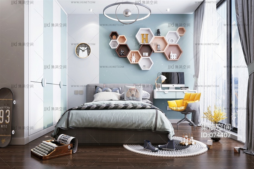 35现代风格儿童房男孩房 3d模型下载 [模型ID:74407]