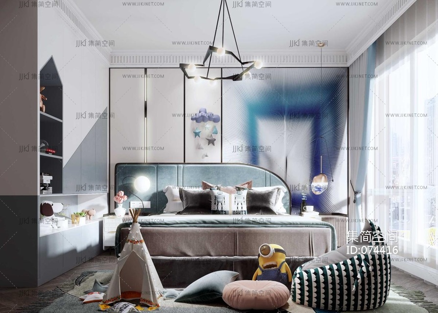 07-现代儿童房,儿童床学习桌-3d模型下载