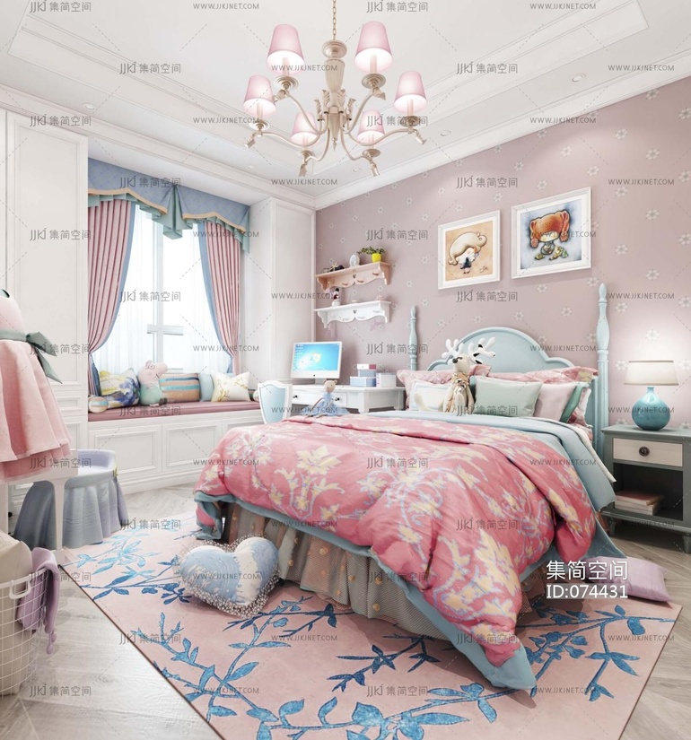 美式女孩房 3d模型下载 [模型ID:74431]