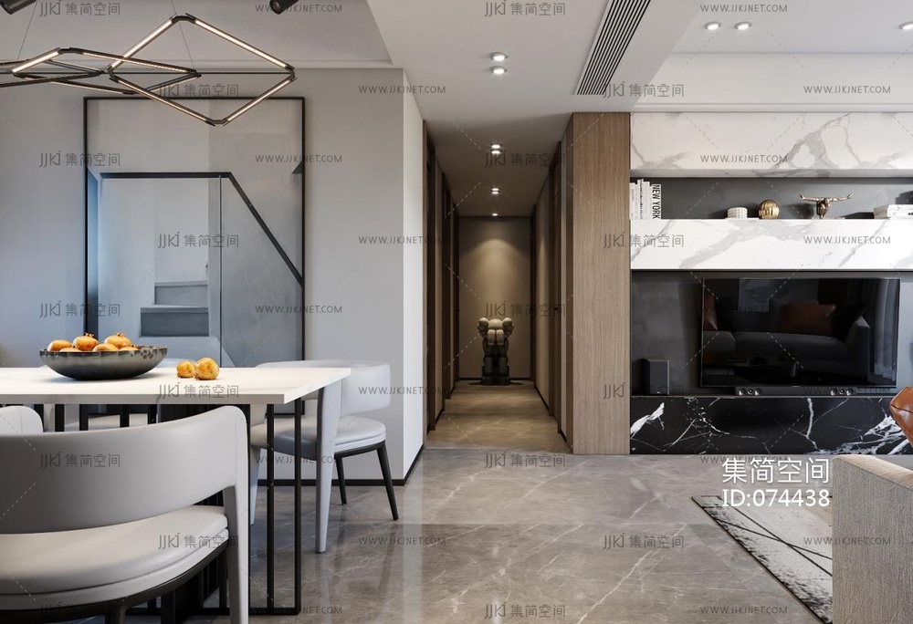 现代客厅餐厅aa 3d模型下载 [模型ID:74438]