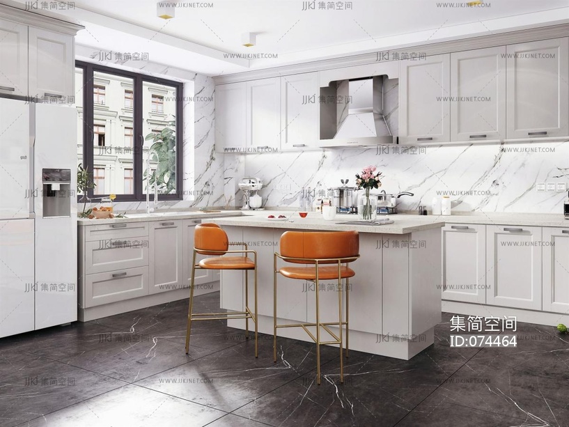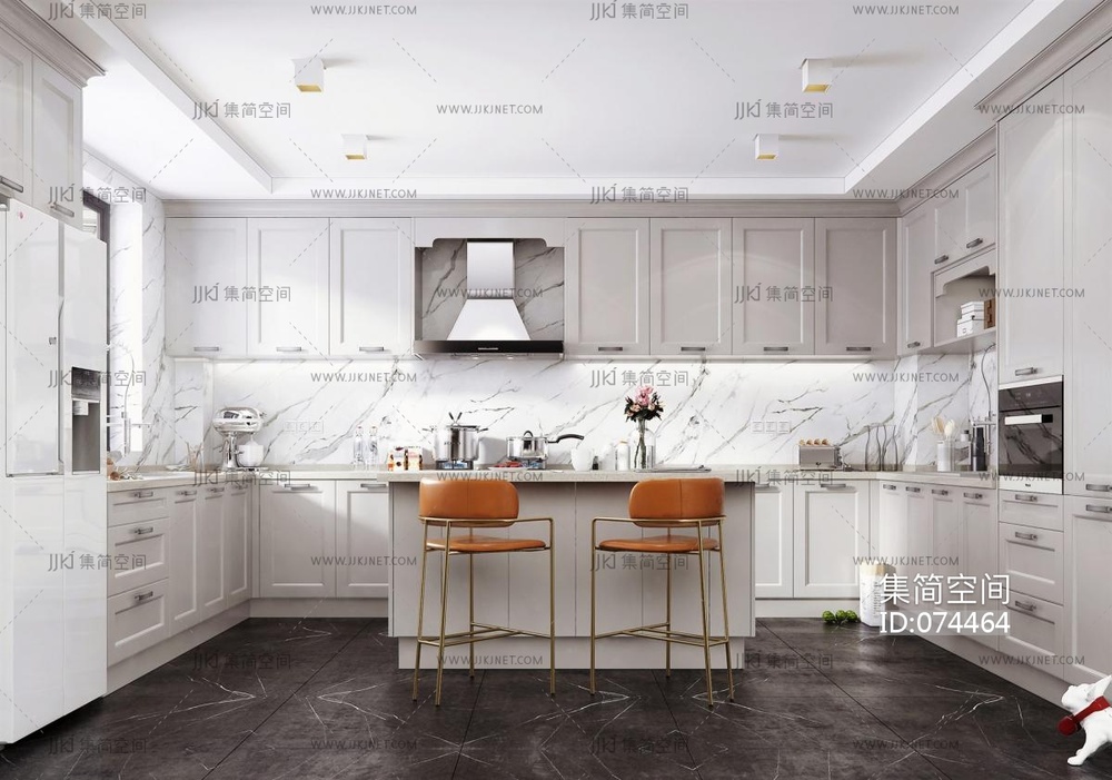 欧式轻奢风格开放式厨房 3d模型下载 [模型ID:74464]