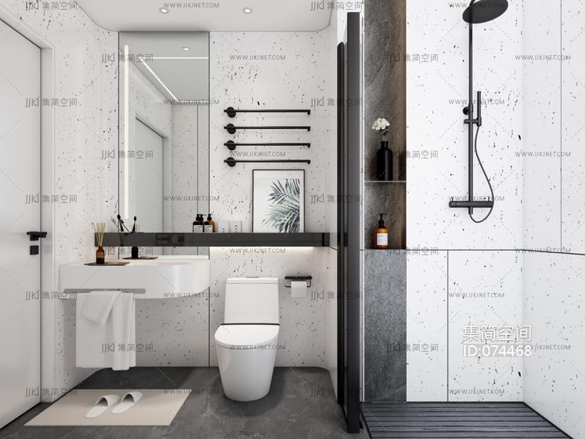 法式奶油风卫生间_洗手盆_马桶抽纸盒花瓶3D模型3d模型下载