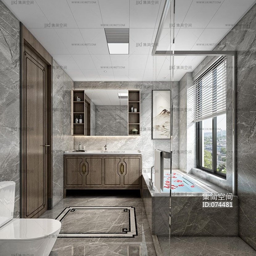 新中式卫生间花瓣 3d模型下载 [模型ID:74481]