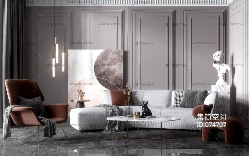 05现代轻奢客厅北欧简约客厅 3d模型下载 [模型ID:74707]