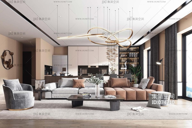 现代简约客厅 3d模型下载 [模型ID:74710]