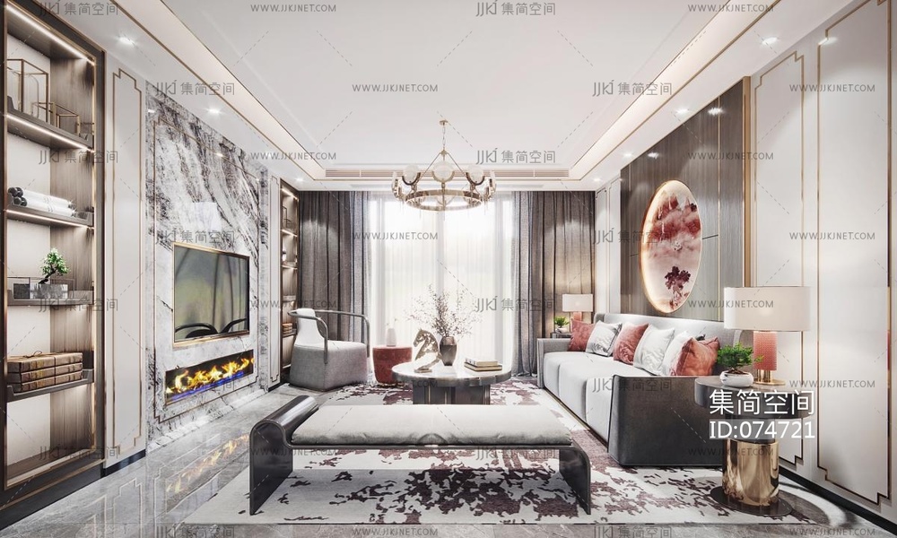 新中式客餐厅 3d模型下载 [模型ID:74721]
