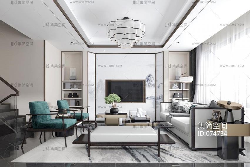 新中式客厅 3d模型下载 [模型ID:74734]