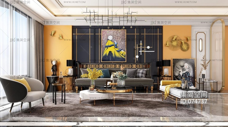 后现代客厅 3d模型下载 [模型ID:74737]