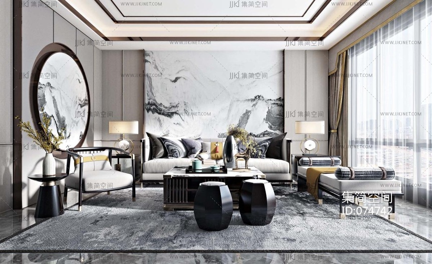 新中式客厅 3d模型下载 [模型ID:74742]