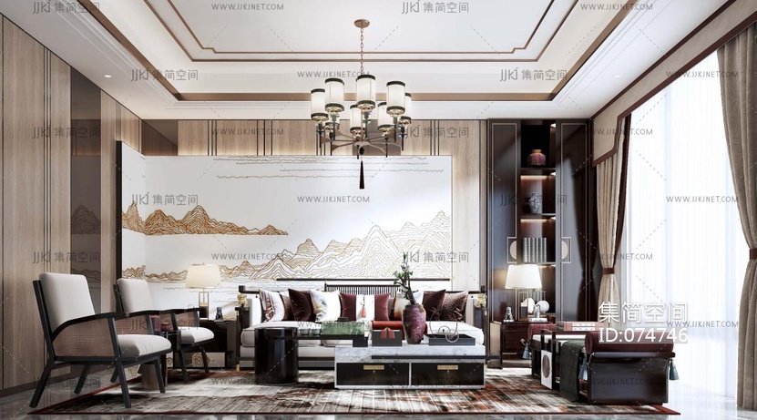新中式客厅 3d模型下载 [模型ID:74746]