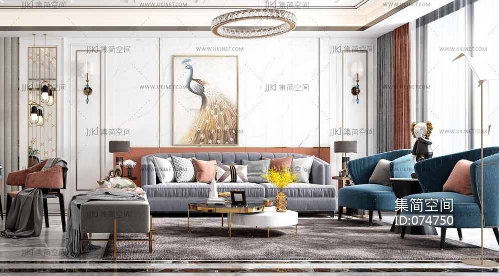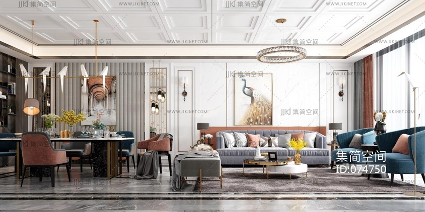 37现代轻奢简欧式客餐厅,软包沙发,茶几组合,单人休闲沙发椅,美人榻,床尾榻,餐桌椅,背景墙,装饰展示柜,饰品,摆件 3 3d模型下载 [模型ID:74750]