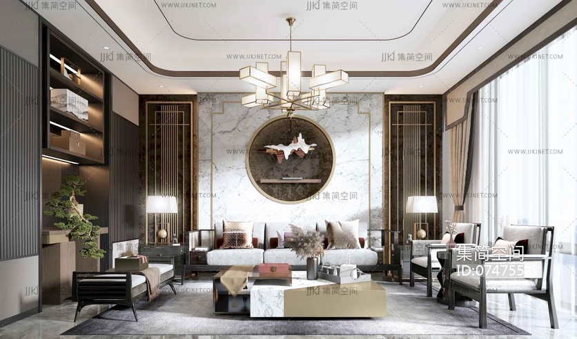 新中式客厅 3d模型下载 [模型ID:74755]
