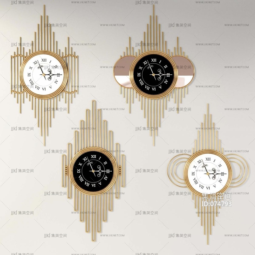 美式轻奢挂钟,钟表 3d模型下载 [模型ID:74793]