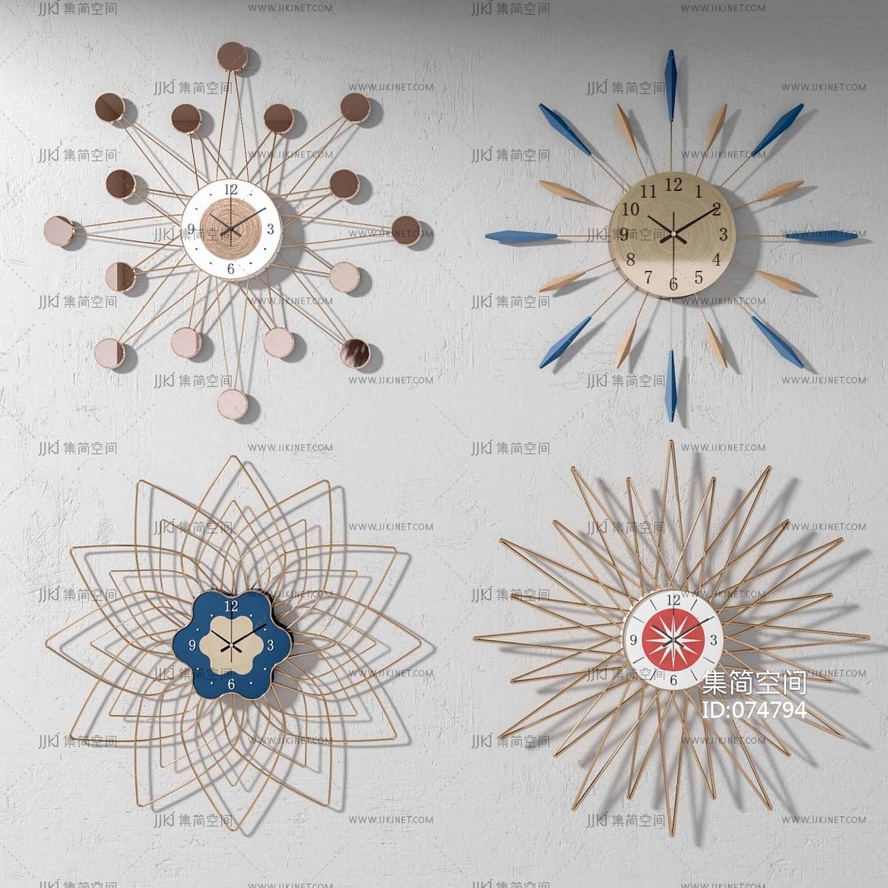 现代金属花形挂钟,石英钟,钟表 3d模型下载 [模型ID:74794]