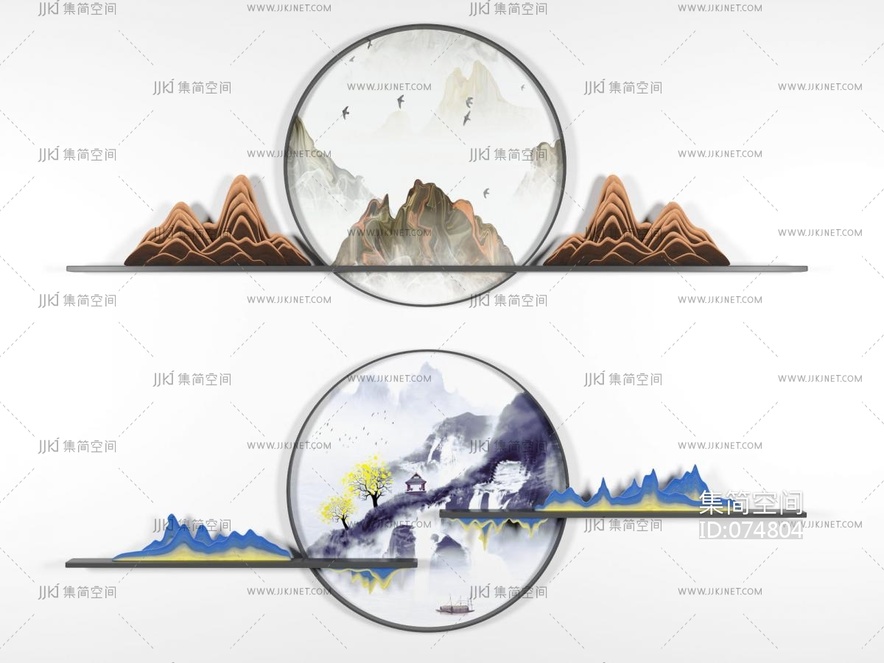 新中式禅意山脉挂件,墙饰挂饰 3d模型下载 [模型ID:74804]