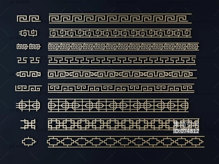 04中式雕花,花格,万字纹,民族花纹花边圈边 3d模型下载 [模型ID:74812]