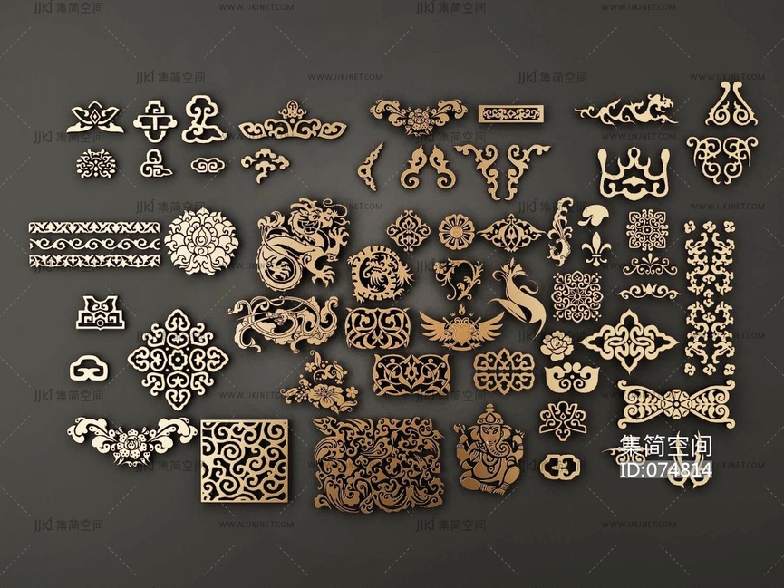 中式金属雕花 雕花 中式雕纹 镀金雕纹3D模型3d模型下载