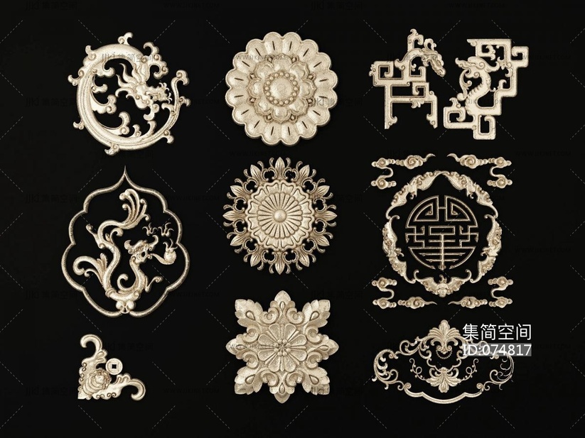 06中式欧式祥云云纹,龙纹,雕花,民族花边花纹,圆形花纹浮雕 3d模型下载 [模型ID:74817]