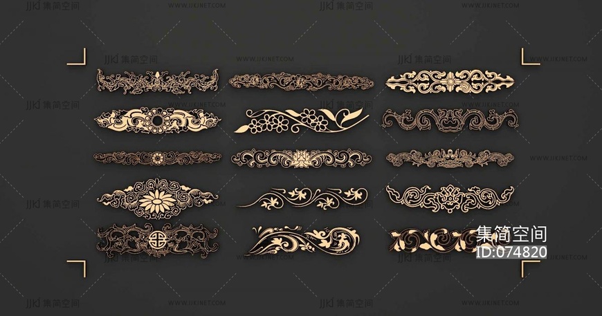 中式金属雕花 雕花 中式雕纹 镀金雕纹3D模型3d模型下载