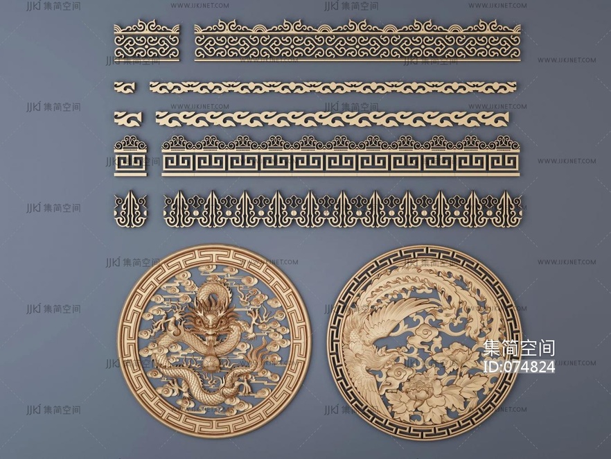 10中式民族雕花,圈边花纹,花边,雕刻 3d模型下载 [模型ID:74824]