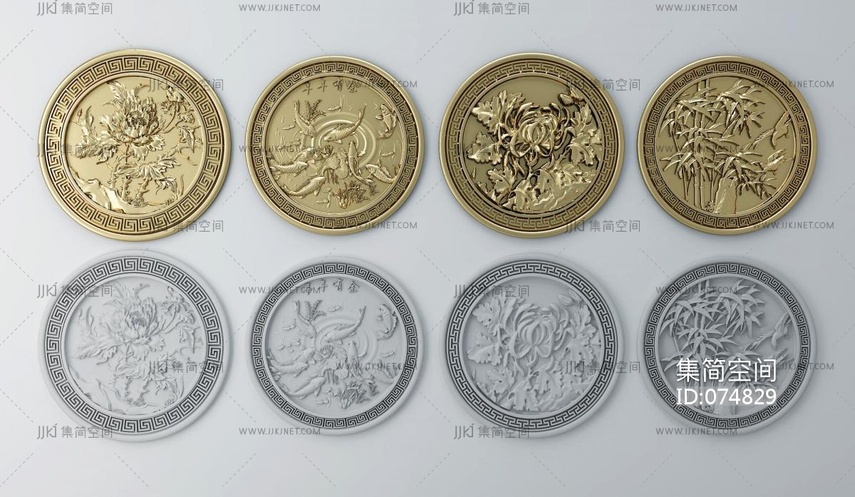 中式金属雕花 雕花 中式雕纹 镀金雕纹3D模型3d模型下载