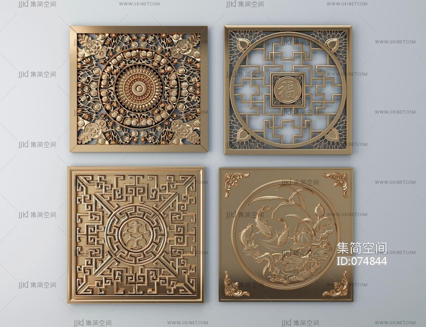 中式金属雕花 雕花 中式雕纹 镀金雕纹3D模型3d模型下载