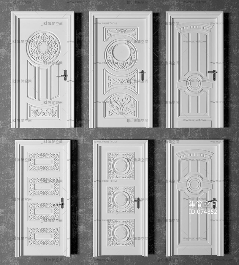 欧式法式雕花单开门,木门组合 3d模型下载 [模型ID:74852]