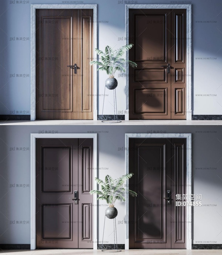 现代欧式入户门子母门,木门组合 3d模型下载 [模型ID:74855]