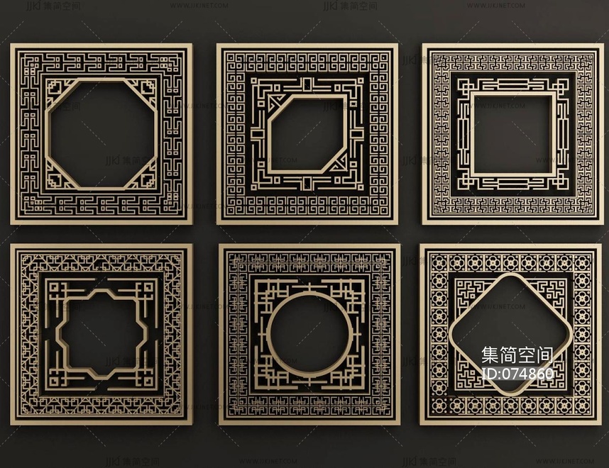 新中式外方内园,雕花,花格 3d模型下载 [模型ID:74860]