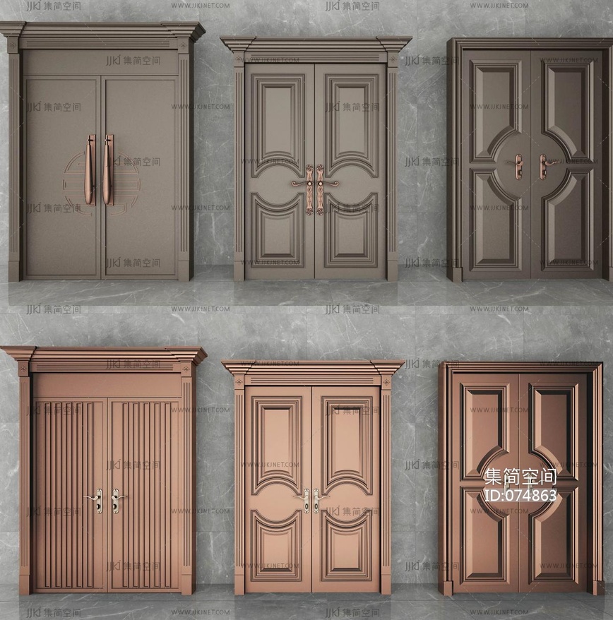 现代欧式别墅大门,入户门 3d模型下载 [模型ID:74863]