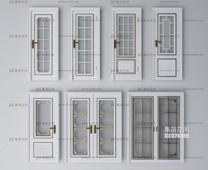 欧式法式木门,单开门,玻璃门,推拉门 3d模型下载 [模型ID:74869]